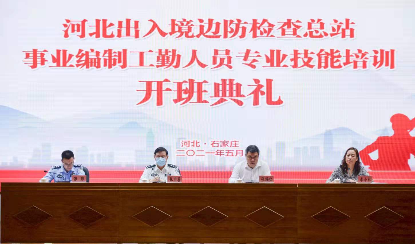 5月14日,河北出入境边检总站事业编工勤人员专业技能培训班开班仪式在乐鱼在线图文信息中心报告厅举行。我校副校长张福仁、河北出入境边检总站办公室主任张宝善、边检总站办公室副主任张伟、我校成人教育部、智能制造学院和汽车系的负责人出席仪式。