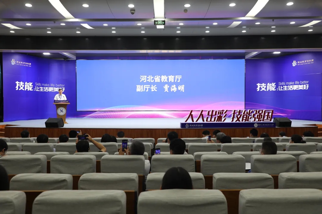 省教育厅副厅长贾海明在启动仪式上致辞,他指出党的十八大以来,全省职业院校办学水平显著提升,服务经济社会发展能力明显增强。我省有49所中职学校建成国家示范校,11所高职院校获批国家优质校,10所高职院校入选国家“双高计划”,3所公办职教本科获准设置。2020年5月,我省作为全国职业教育改革成效明显的4个省份之一,受到国务院办公厅通报表彰。当前和今后一个时期,全省将抓好对大会精神的贯彻落实,立足新发展阶段、贯彻新发展理念、融入新发展格局,着力从构建具有河北特色的现代职业教育体系、强化职业教育类型特色、提升职业教育办学质量、深化职业教育体制机制改革、增强服务发展能力等五个方面发力,为全国建设技能型社会提供经验、做出样板。