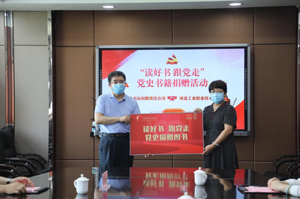 活动中,河北省新华书店有限责任公司为我校赠送《中国共产党简史》《习近平新时代中国特色社会主义思想学习问答》《论中国共产党历史》《毛泽东 邓小平 江泽民 胡锦涛关于中国共产党历史论述摘编》《习近平讲故事》等书籍。河北省新华书店党委副书记、总经理韩丽璞介绍了开展党史学习教育书籍捐赠活动的重要意义,并对本次捐赠的党史学习教育系列图书内容作了详细说明。
