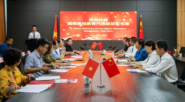 薛晓萍向来宾介绍了学校概况和近几年学校国际交流取得的成果,表达了希望与越南高校互学互鉴、共建共享、更好促进中越职业教育和文化领域交流的良好愿望。越南河内矿业地质大学陈春长书记介绍了学校概况,提出与我校开展广泛深入合作的意愿。两校就“中文+职业技能”培训、中文工坊建设、本科层次留学生培养、联合科研、师生交流等内容进行了深入探讨。