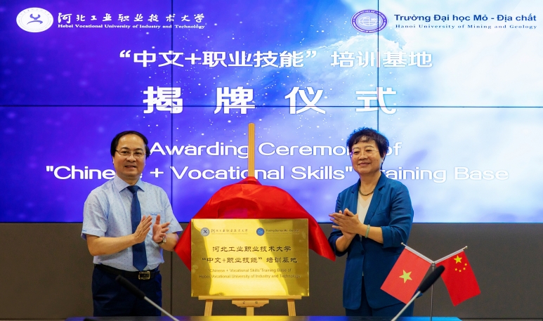 会上,我校分别与两所越南高校签署合作谅解备忘录,与河内矿业地质大学共建“中文+职业技能”培训基地项目也正式揭牌启动。去年10月以来,我校对河内矿业地质大学70余名师生开展合计396课时中文培训,在此基础上,两校合作共建“中文+职业技能”培训基地,进一步深化中越职业教育国际合作,更好服务“一带一路”建设和企业“走出去”,为中越产能合作培养更多国际化高素质技术技能人才。