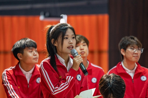 参加活动的师生们首先共同观看了微视频《十年——习近平与大学生在一起》,学生张靳嘉艺领读《习近平:在庆祝中国共产主义青年团成立100周年大会上的讲话》(节选)。6名优秀学生代表围绕习近平总书记关于青年大学生的寄语,结合各自的学习、实践经历,为现场师生带来了精彩的分享。在热烈的发言后,全国大学生志愿服务品牌“童伴同行”志愿服务队,以真实志愿服务故事创编的“志愿出发 星火筑梦”情景微剧,展示了学校青年师生在青春奉献中书写新时代“答卷人”的风采。一幕幕生动的场景、一件件鲜活的事例,让在场师生深入体会到习近平总书记对青年特别是大学生始终如一的关注、关心、关爱。最后,到场的嘉宾老师与团支部成员进行了互动,河北省团校常务副校长马瑞智老师鼓励学校各级团支部要以多种形式带动广大团员学生参与到学习活动中,引导青年学生增强对新思想的政治认同、思想认同、理论认同和情感认同上下功夫,发扬理论联系实际的优良学风,切实把学习成效转化为改造主客观世界的内在主动,努力成长为堪当大任、能做大事的优秀人才。