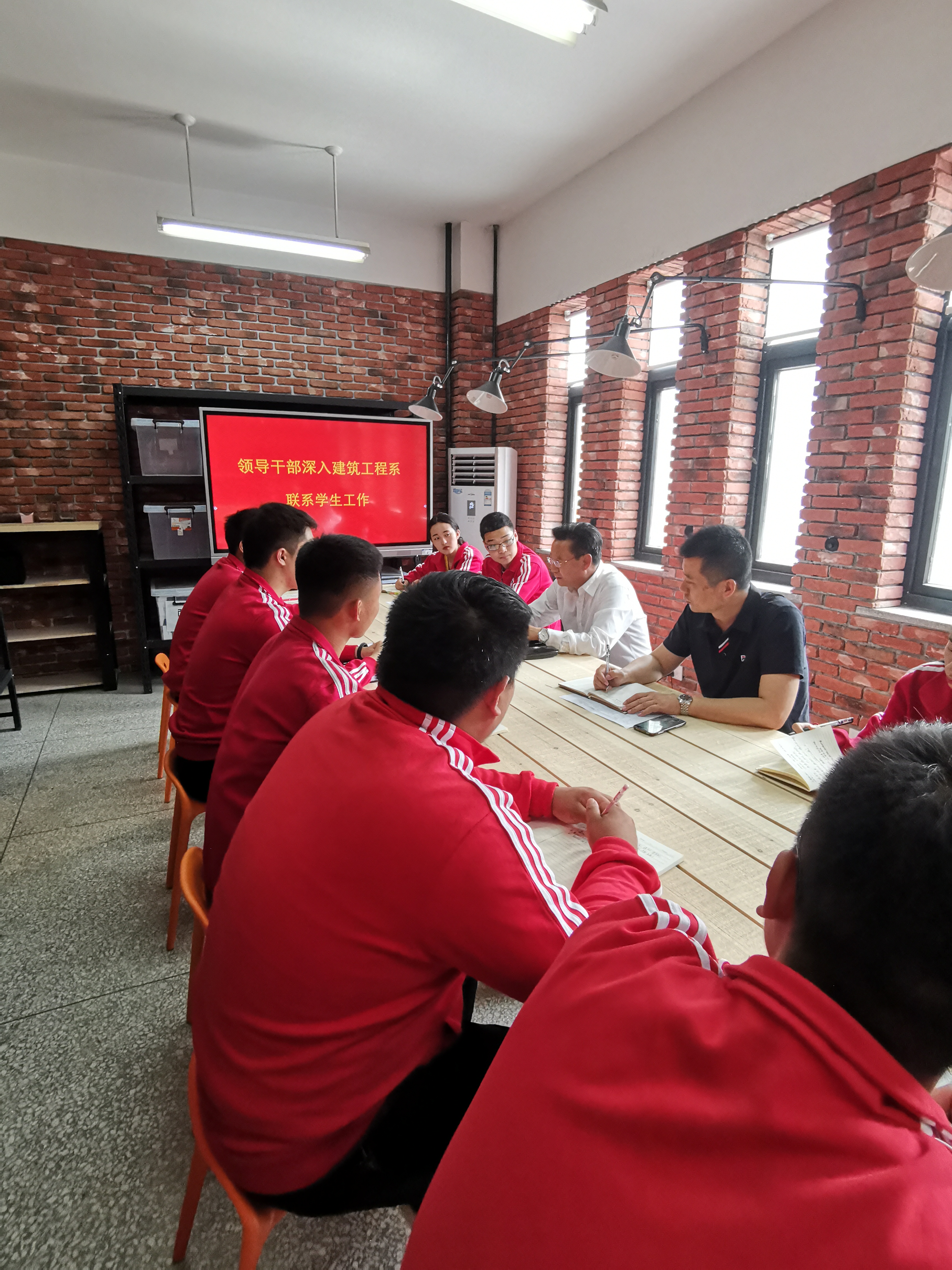 为贯彻落实高校领导干部深入基层联系学生工作的有关要求和《河北工业职业技术学院“三全育人”综合改革试点建设方案》文件精神,5月16日,学院院长贾俊礼来到三号教学楼坚果文创工作室,与联系班级2018级建筑设备工程技术班的学生代表以及带班辅导员面对面亲切畅谈。