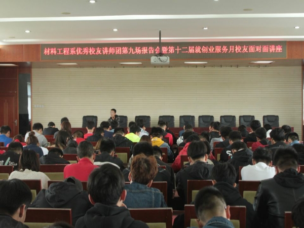 4月25日下午,我院材料工程系在五楼报告厅举办了“优秀校友讲师团”第八场报告会暨第十二届就业创业服务月校友面对面讲座,此次报告会邀请了新兴铸管股份有限公司炼钢部生产管理中心技术员卢星鹏作了题为《越努力,越幸运》的先进事迹报告,材料工程系负责人、相关教师及200余名学生聆听了报告会。