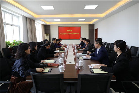 3月18日下午,河北工程技术学院常务副校长辛彦怀等一行八人来我院考察交流。学院党委书记王振杰、常务副院长付俊薇、副院长韩提文以及相关部门负责同志亲切接待了来访客人并参加了交流座谈活动。