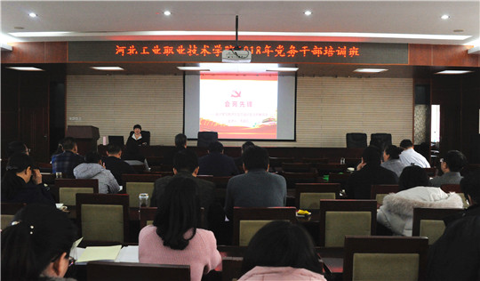 为深入贯彻落实新时代党的建设总要求及全国组织工作会议精神,扎实推进“两学一做”学习教育常态化制度化,不断提升党务干部新形势下基层党建工作和思想政治工作水平,提高新任职党支部书记、组织员履职尽责的意识和能力,12月19日至22日,我院在行政楼五楼报告厅举办了“河北工业职业技术学院2018年党务干部培训班”,各党总支(直属党支部)书记、党总支副书记、教师党支部书记、学生党支部书记和各系专职组织员参加了学习培训。学院党委副书记王建刚出席会议并发表讲话。