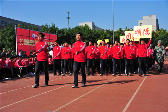 在庄严的国歌声中,鲜艳的五星红旗冉冉升起。学院院长贾俊礼逐一检阅了新生军训方队,同学们以饱满的热情迎接学院领导的检阅。受训新生方队一一走过主席台,他们军姿挺拔、步伐矫健、口号嘹亮、气宇轩昂,展现了新生良好的精神面貌。花样队列操、鼓舞飞扬表演、旗语操、捕俘刀、内务表演以及军体拳表演构思新颖、动作整齐划一、喊声铿锵有力,尤其是队列操方队,以“我爱工院”为主题,不时变换队形,呈现出“10”到“0”的倒计时数字,预示开启大学新生活。随后迅速拼出了“1958”、2018”、“60”的字样,为工院60年发展历程献上了一份特殊的祝福。汇报表演结束后,学院副院长韩提文宣读了《河北工业职业技术学院2018年新生军训评比表彰决定》,表彰了在2018年新生军训取得突出成绩的先进班级、内务标兵宿舍、内务标兵、队列标兵和先进个人。学院领导向新生代表颁发了校徽,新生代表、老生代表分别发言,表达了河北工院给他们的美好感受和对即将开始的梦想旅程的憧憬。智能制造学院王丽佳老师代表教师发言,表达了全体教师对新同学的欢迎与期望。