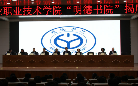 10月11日下午,河北工业职业技术学院“明德书院”揭牌仪式在图书馆报告厅举行。学院党委副书记王建刚教授出席了揭牌仪式,学工部相关负责人、明德书院全体教师与书院内全体学生共同见证了这一历史性时刻。仪式上,学院党委副书记王建刚教授为明德书院揭牌,这也标志着我院依托“书院制”探索学生管理新模式的正式启动。