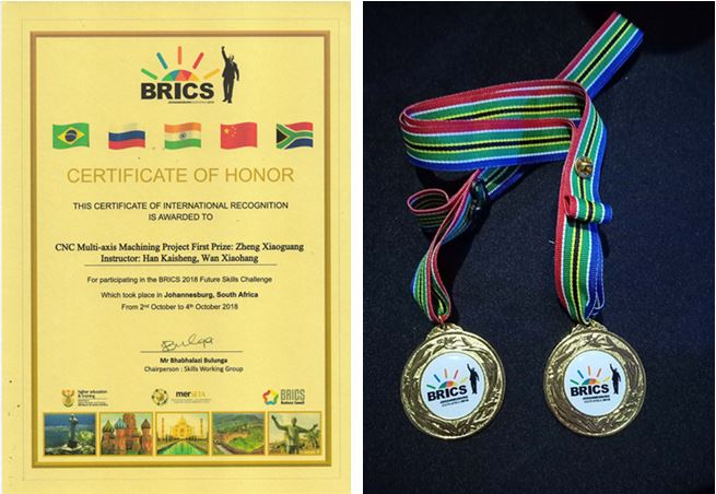 2018年9月28日-10月6日,第二届金砖国家未来技能挑战赛在南非约翰内斯堡加拉格尔会议中心成功举办,来自巴西、俄罗斯、印度、中国、南非五个金砖国家的143名参赛选手参加了14个竞赛项目。我院智能制造系团队代表中国参加了数控多轴加工赛项,经过激烈的角逐,最终荣获数控多轴加工项目一等奖的优异成绩。