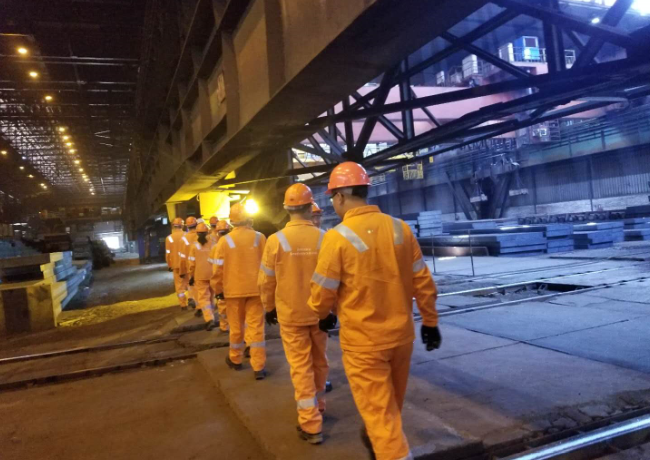 实习团抵达目的地后,受到了河钢集团塞尔维亚有限公司领导和相关人员的热烈欢迎和亲切接待。首日,赛钢工作人员对我院实习学员进行了三级安全教育并详细介绍了河钢赛钢公司的规模、地理位置、设备技术水平、生产经营等基本情况。在随后的实习过程中,我院实习团被分为两组在公司热轧厂、冷轧厂交叉换组实习。为了尽快适应当地语言环境,提高实习效果,一方面我院带队实习教师主动请缨承担了翻译工作,一方面要求学生通过查阅字典、手机在线翻译等方式尽快掌握专业词汇,提升英文交流水平。目前,我院学生已完全适应了赛钢的实习,并能够与公司技术人员用英文进行交流。我院学生较为扎实的专业基础、优良的纪律性和特有的精神风貌受到了赛钢领导与相关人员的高度评价与赞扬。