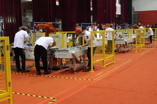 来自全国28个省、自治区、直辖市的76支代表队共400余人参加了本赛项的比赛。该赛项以工业机器人智能工作站系统作为竞赛平台,三名选手协作完成机械和电气设备系统的装调、工业机器人标定与示教器编程、通讯设置与视觉系统编程调试、AGV机器人与码垛机器人的编程调试等基本工作任务,并通过对整套系统人机界面开发及控制程序设计等完成工业机器人智能工作站系统的联机运行和特定制造流程等综合任务,重点考查学生的职业素养、团队协作、分析问题和解决问题的能力。