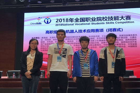 作为首次参赛团队,我院代表队克服没有设备、缺乏经验等诸多困难,通过奋力拼搏,最终取得2018年全国职业院校技能大赛高职组工业机器人技术应用赛项“三等奖”。