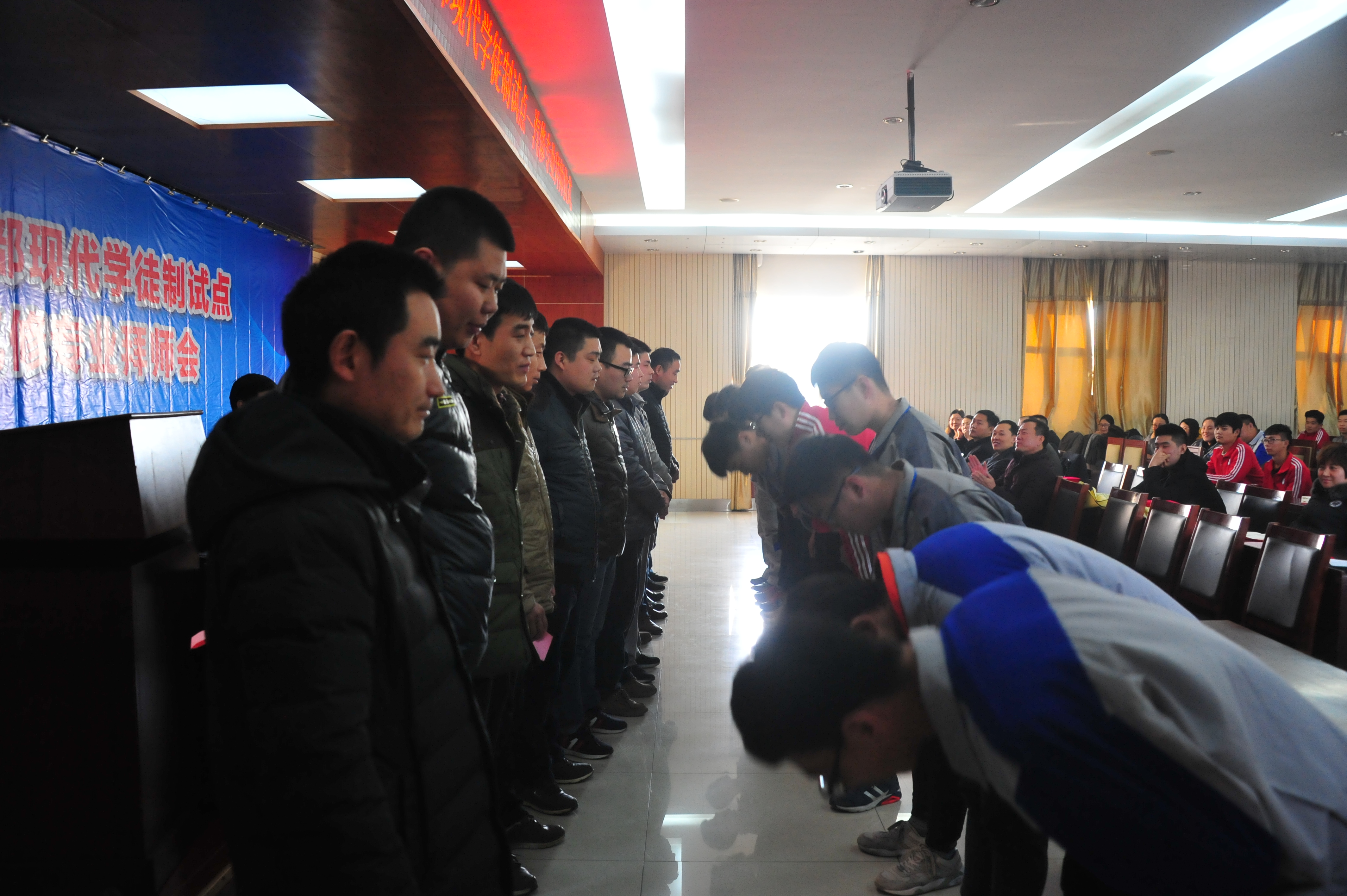 近日,教育部现代学徒制试点汽修专业拜师会在我院南校区举行。长安福特、上汽通、宝马、一汽奥迪等11家企业专家团队、16名企业师傅、学院汽修专业教师、学徒参加拜师仪式。