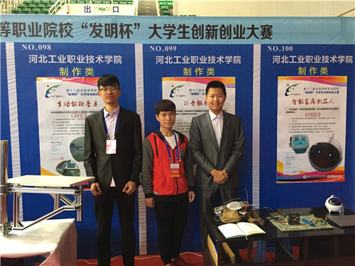 经过专家组评审,选手答辩,我院发明制作类 “多功能折叠床桌”、“智能家庭机器人”、创意类 “视野农情信息平台”三个项目获得大赛一等奖,“外骨骼辅助系统”、“校园嘟嘟快帮”两个项目获得大赛三等奖,成绩位列河北参赛院校前列,并三次作为获奖代表上台领奖。同时,李伟华、刘芳琳、肖斌、李岩四位老师被评为“优秀指导教师”,梁海军老师被评为组织工作先进个人,我院获得大赛“优秀组织奖”荣誉称号。