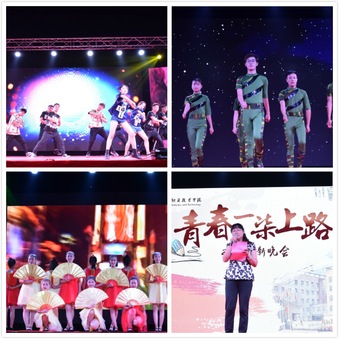 晚会以一段感人的视频暖场,随后一首动感且极具工院特色的歌曲《欢迎你到工院来》拉开了整场晚会的序幕。舞蹈《步调一致》节奏欢快、舞姿有力,引发了现场同学的阵阵欢呼。快板舞《工院礼赞》通过简洁明快的节奏,全面展示了工院日新月异的建设和发展情况。机电系同学们带来的舞蹈《钢铁魂》,表现了我院学子坚忍不拔、顽强拼搏的精神。九系新生辅导员老师们带来的歌曲《我的骄傲》,表达了我院教师对同学们深深的爱,在老师的眼中每一位同学都是自己的骄傲。舞蹈《指尖上的生活》,倡导大家放下手机,真正地去亲近课堂,亲近书籍,亲近自然,古典舞《传承》更是将大家带入一个美轮美奂的古典世界。情景歌舞《青春的选择》、《请爸爸妈妈放心》、《今天我们这样爱国》通过一幅幅感人的画面、一段段震撼的视频,再加上同学们的深情演绎,用人间大爱直接撞击在场每一个人的心灵,直至深处。院模特队的《海陆空 乘务情》别出心裁,各职业制服秀展示了高职学生的风采和追求,增强了同学们对工院的认同感。歌曲《老爸》、《江南》、《特别的爱给特别的你》为大一的学弟学妹们创造了一幅浪漫唯美的大学生活画面,使大家向往之。街舞社的《In the night sky》和武术队的《武魂》,用直观动感的方式向新生们介绍学院丰富多彩的社团活动,展现了我院学子积极向上、活力十足的精神风貌,将现场气氛推向高潮。环化系舞蹈《红色英雄》翩若惊鸿、婉若游龙,带给大家强烈的视觉冲击。本次晚会还设置了“青春寄语”环节,教师代表机电系副主任王丽芬老师勉励大家满怀希望,在大学里开辟出属于自己的一片天地;家长寄语通过视频的形式传递出新生家长的不舍和期待;家长代表2016全国自强之星提名的魏鸿影音工作室社长于鸿鹏鼓励大家运用自身优势和才能,在社团中得到锻炼;西部计划志愿者赴西藏自治区阿里地区的17届材料系孙洪帅同学、新疆维吾尔自治区焉耆县的17届环化系王聪雨同学、西藏自治区日喀则地16届汽车系李鹏同学、西藏自治区日喀则地区留藏工作14届经贸系王雪静同学特意为母校录制了视频,通过大屏幕与新生们分享了他们在志愿服务过程中的人生感悟。最后,整场晚会在歌舞《不忘初心》中圆满落下了帷幕。