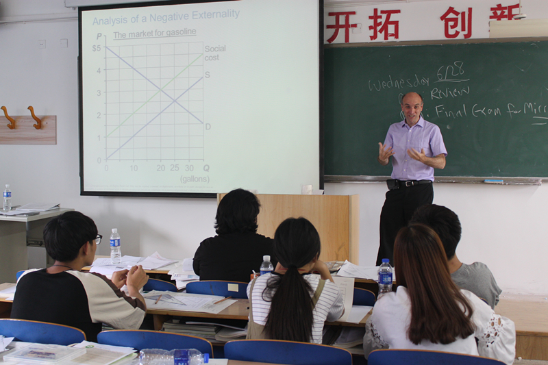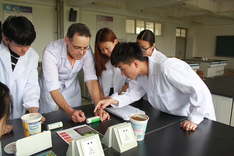 Willam教授和Steve教授在我院期间,承担了《环保概论》(Environmental and Energy Tech. Seminar)、《环境监测》(Environmental Monitoring)、《微观经济学》(Micro Economics)和《宏观经济学》(Macro Economics)四门课程的教学任务,120学时课程全部为英语教学,两位教授从实际生产生活出发,深入浅出地进行了专业课程讲解。我院环境与化学工程系与国际交流中心为课程配备4名*教教师和2名全程助课教师,做到了开课前中美教师联合开展课程教研、上课前助课预讲授、上课中助教协助开展好课程教学、课后中美教师联合辅导,环化系环保教研室针对美方课程还制作了《教研手册》、《听课记录册》、《助课记录册》,确保课程教学效果。