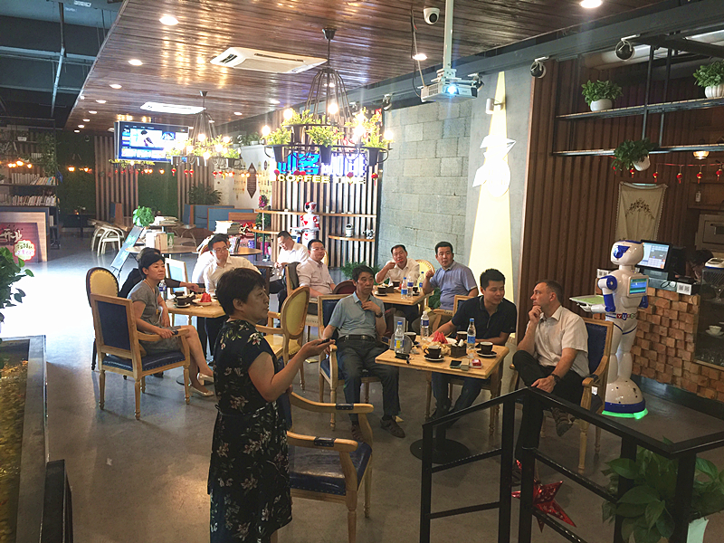参观结束后,来宾们前往学院大学生创新创业实训基地——创客咖啡参观并进行交流与磋商。付俊薇副院长首先向客人们详细地介绍了我院的基本情况和近年来的国际化发展,并表达了我院希望可以与德国马格德堡大学展开合作,主要集中在教师培训、学生交流、课程建设与引进等方面。双方交流得十分愉快,弗兰克·布宁院长表示此次来访收获颇多,希望在未来双方可以有机会进行合作。