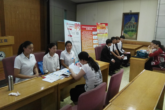日前,石药集团旗下六家公司一行13名人资经理来我院招聘2017届毕业生,此次招聘提供的岗位主要是面向销售、行政助理等职位,通过宣讲、初试、复试等环节,最终40名学生脱颖而出,即将赴企业进行顶岗实习。