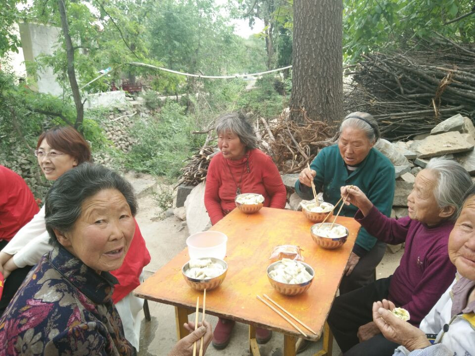 经过230余公里的长途跋涉志愿者们终于来到虎道村,在当地村民的带领下为贫困老人送出物资,献出他们的爱心。在包饺子环节,志愿者们更是大显身手。大家各司其职,洗菜、切馅、和面、擀饺皮、包饺子……不一会儿,一碗碗热气腾腾、香味扑鼻的饺子就摆在了四十余位孤寡老人的面前。老人们喜笑颜开地吃着饺子,口中念叨着感谢之言。香气飘散,温暖溢满每个人的心房,此情此景,令每个志愿者倍感欣慰。