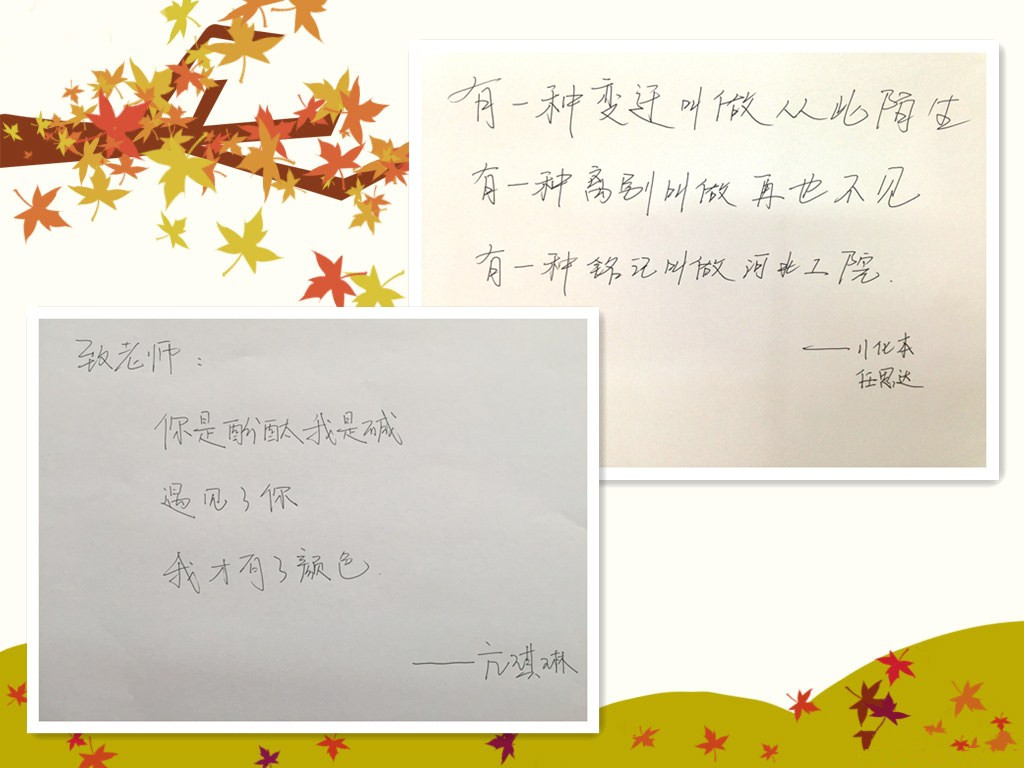 为了给毕业生提供一个表达对母校、老师、同窗的感情平台,通过微信公众平台和班级活动这两个渠道进行三行情书征集活动,毕业生们用三行情书抒发自己真挚的情感,表达自己的真实感触,此次活动,不仅促进了毕业生之间的情感交流,也为他们提供一个抒发内心情感的平台,同时也让他们对情感有了更深的理解。