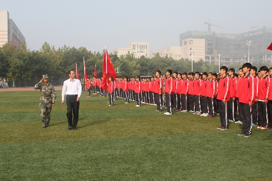 九月校园,物华人杰,金风送爽,在这阳光灿烂的金秋时节,我院2014级新生开学典礼暨军训成果汇报在南校区运动场隆重举行。学院党委书记王振杰、院长贾俊礼,党委副书记王建刚,党委副书记、纪委书记郭社军、副院长韩提文、张福仁以及驻石某部队领导出席了大会。相关职能部门负责人,各系党政负责人、团总支书记,新生辅导员、全体2014级新生以及承担我院军训任务的全体教官参加了大会。