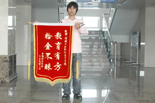 张学峰同学拾金不昧的行为再一次展示了当代大学生风采,希望全院学生学习张学峰拾金不昧的品质,积极主动参与我院示范校建设,为学院发展和文明校园建设贡献自己的一份力量。