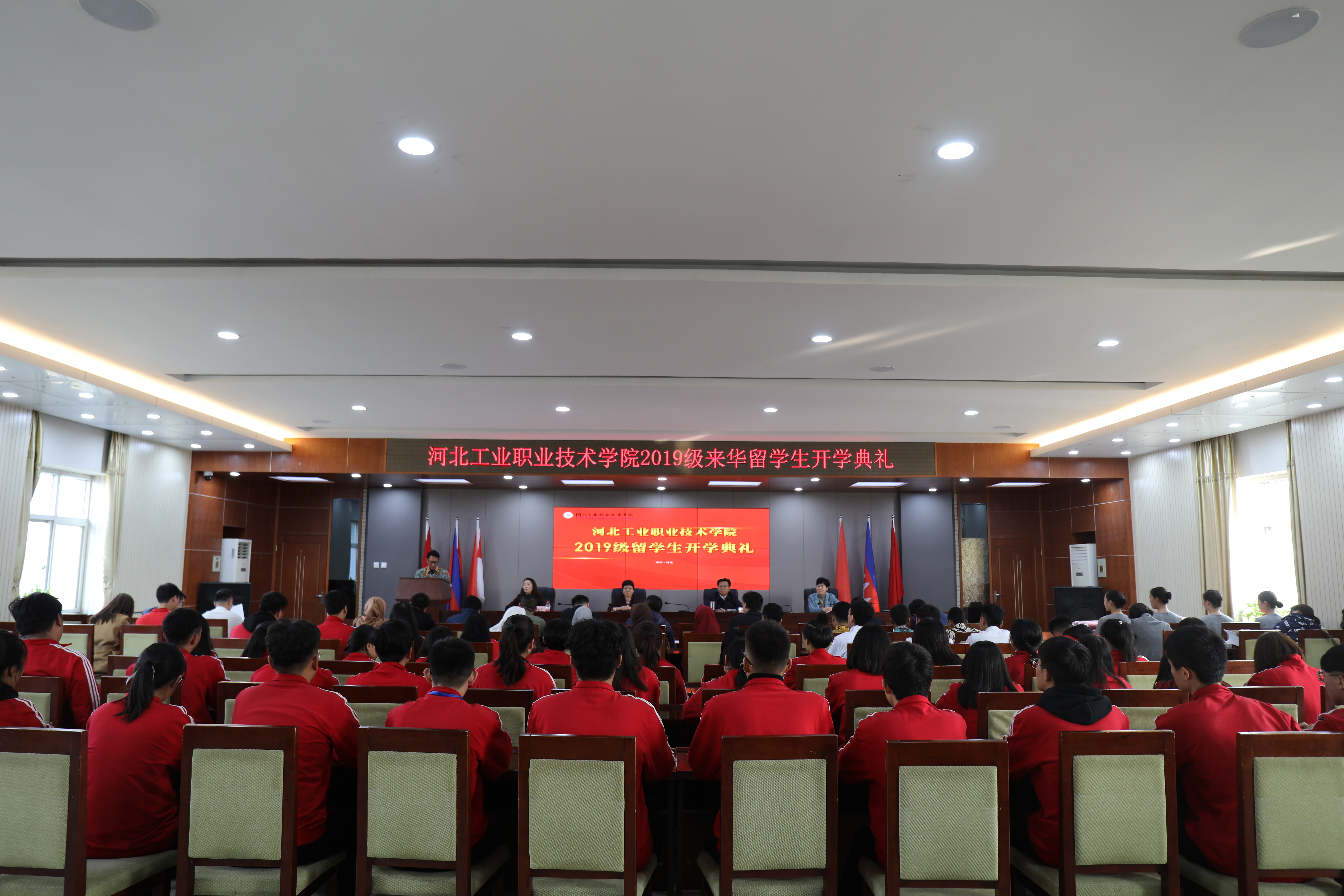 11月5日下午,河北工业职业技术学院2019级留学生开学典礼在9号楼五楼报告厅举行。学院院长贾俊礼教授、副院长付俊薇教授出席典礼,国际教育交流中心、学工部、教务处、安全工作处、经济贸易系、建筑工程系、工商管理系、计算机系、环化系、国际教育学院等单位相关负责人以及全体留学生新生参加此次开学典礼。
