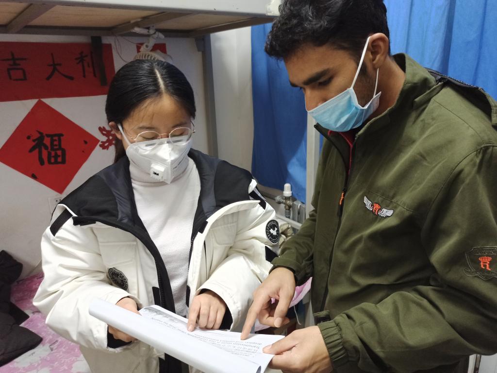 为切实做好疫情防控工作,我院及时启动应急预案,在学院疫情防控工作领导小组的统一指挥下,以国际教育学院为责任部门,各部门有序协作,细化任务分工,加班加点落实防控措施。根据疫情发展情况,学院陆续制定了《2020年寒假期间留学生离校管理方案》和《国际教育学院对于在校留学生的管理规定》并严格落实,一批教师志愿者被动员起来,扎实落实在校留学生包联责任人制度和24小时专人在校值班制,一对一、无遗漏联系、关心在校留学生,确保安全稳定。