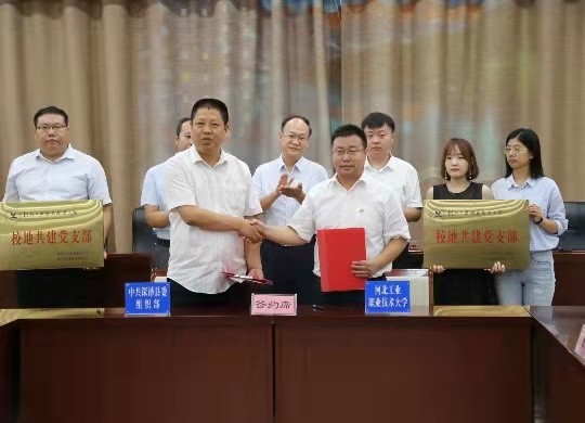 为实现校地双方优势互补、合作共赢、共同发展,助力深泽县提升人才引进和产业发展融合度,7月27日,环境与化学工程系党总支书记王兵及3名应用化工和药品生产技术专业骨干教师到深泽县进行调研走访,并签订了校地合作暨党建共建协议。深泽县常委、组织部长梁勇强,县委组织部副部长谷磊,经济开发区副书记张亚强等出席签约仪式。