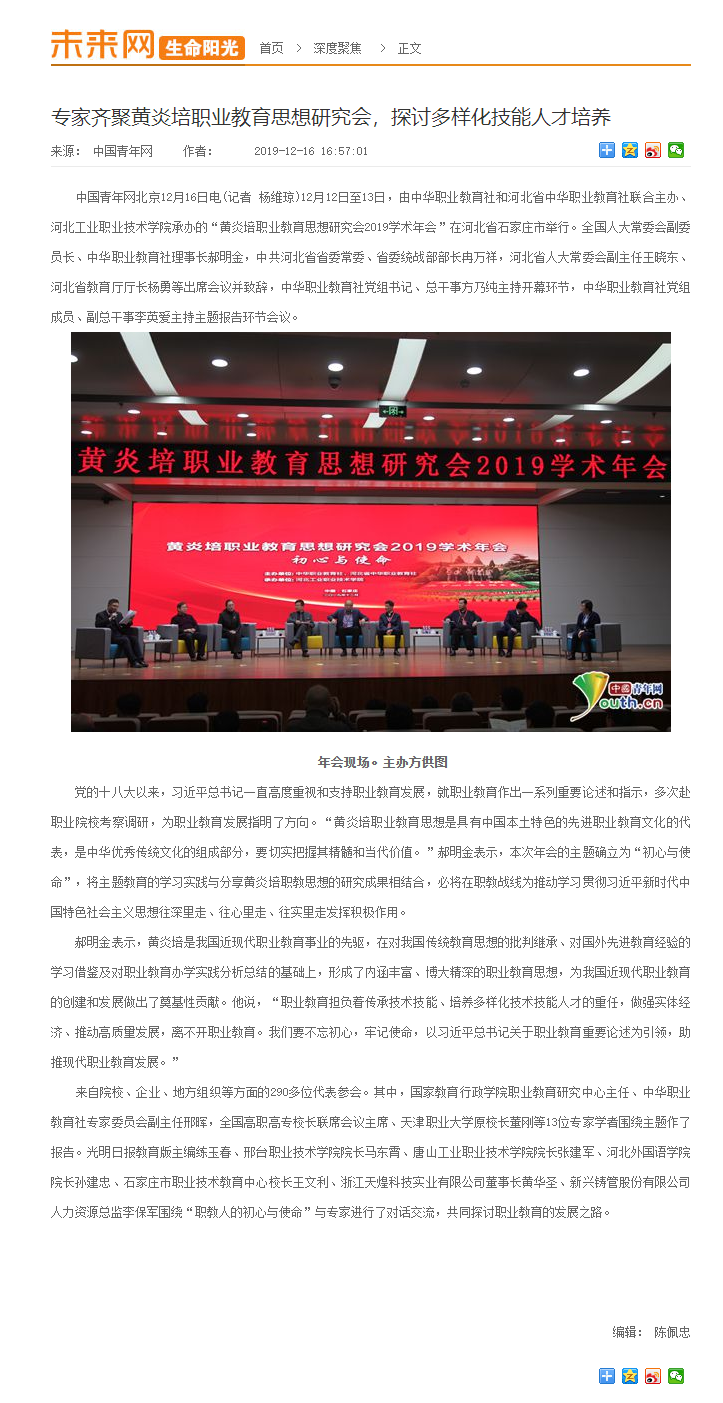 未来网报道黄炎培职业教育思想研究会2019学术年会在我院举办