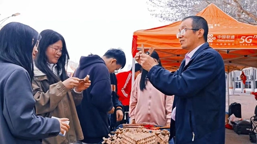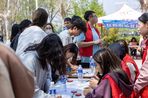 社团互动展示区更是人流涌动,欢笑不断。在非遗进校园展区,学校特邀国家级、省级非物质文化遗产项目的传承人、技艺大师进校园,让学生近距离感受非遗文化的魅力。同学们在展区绘制扇画、水墨人物,在落笔的同时感受古色古香的国风韵味、在匠人师傅指导下制作绳编饰品、品尝中国糖画的甜蜜、体验传统米上刻字的技艺、探索解开鲁班锁的谜题。除了台上的精彩表演和各社团的缤纷呈现,学校还策划了“集章打卡”活动,帮助同学们更好地参与其中,给每位同学们留下“独一份”的社团记忆。