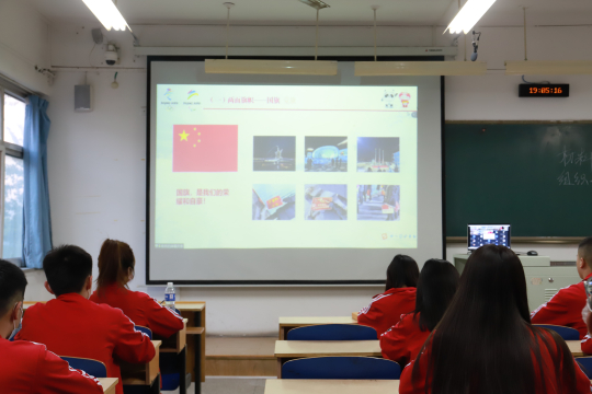 陈伟老师首先从“两面旗帜”“两件大事”“两种区域”“两种设施”“两种态度”“一个承诺”“一个口号”七个方面,展示了本届冬奥会的整体面貌,让同学们进一步了解了本届冬奥会全景。接着,陈伟老师以“小城变化”为重点,逐一介绍了本届冬奥会给冰雪小镇崇礼带来的巨大变化,使同学们通过看到正在焕发新颜的小城,感受国家的强大力量。最后,陈伟老师细说了在冬奥会历时近半年的满怀热忱、尽心尽责的志愿者工作,一方面使同学们体会到了冬奥志愿者们舍家忘我的数月坚守和岗位奉献,另一方面也使大家感受到了党的领导是举办冬奥会的最大的优势,社会主义制度的优越性是国家举办冬奥会有力体现。