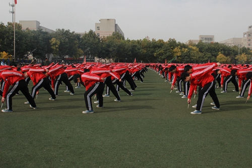 在庄严的升旗仪式后,党委书记王振杰检阅了新生军训方队。随后,受训新生方队一一走过主席台,各方队军姿威武、步履矫健、口号嘹亮、气势恢宏,展现了新生斗志昂扬的青春面貌。在汇报展示中,新生们进行了军体拳、匍匐刀、旗语操、花样队列等表演,并通过队形的变换,呈现出了“长城”、“天安门”、“五星红旗”、“中国梦 强军梦 我的梦”以及工院的校徽等画面,传递出工院学子求真善美,厚德博学,创新自强,严谨务实的精神,表达对祖国的敬意,对工院的热爱。仪式现场表彰了在2020年新生军训中取得突出成绩的先进集体和个人。学院领导向“钢铁连”赠送锦旗,为新生代表颁发了校徽。智能制造学院教师代表王丽佳老师发言,表达了全体教师对新同学的欢迎与期望。新生、老生代表分别发言,表达了对即将开启的校园生活的憧憬和河北工院给他们的美好向往。