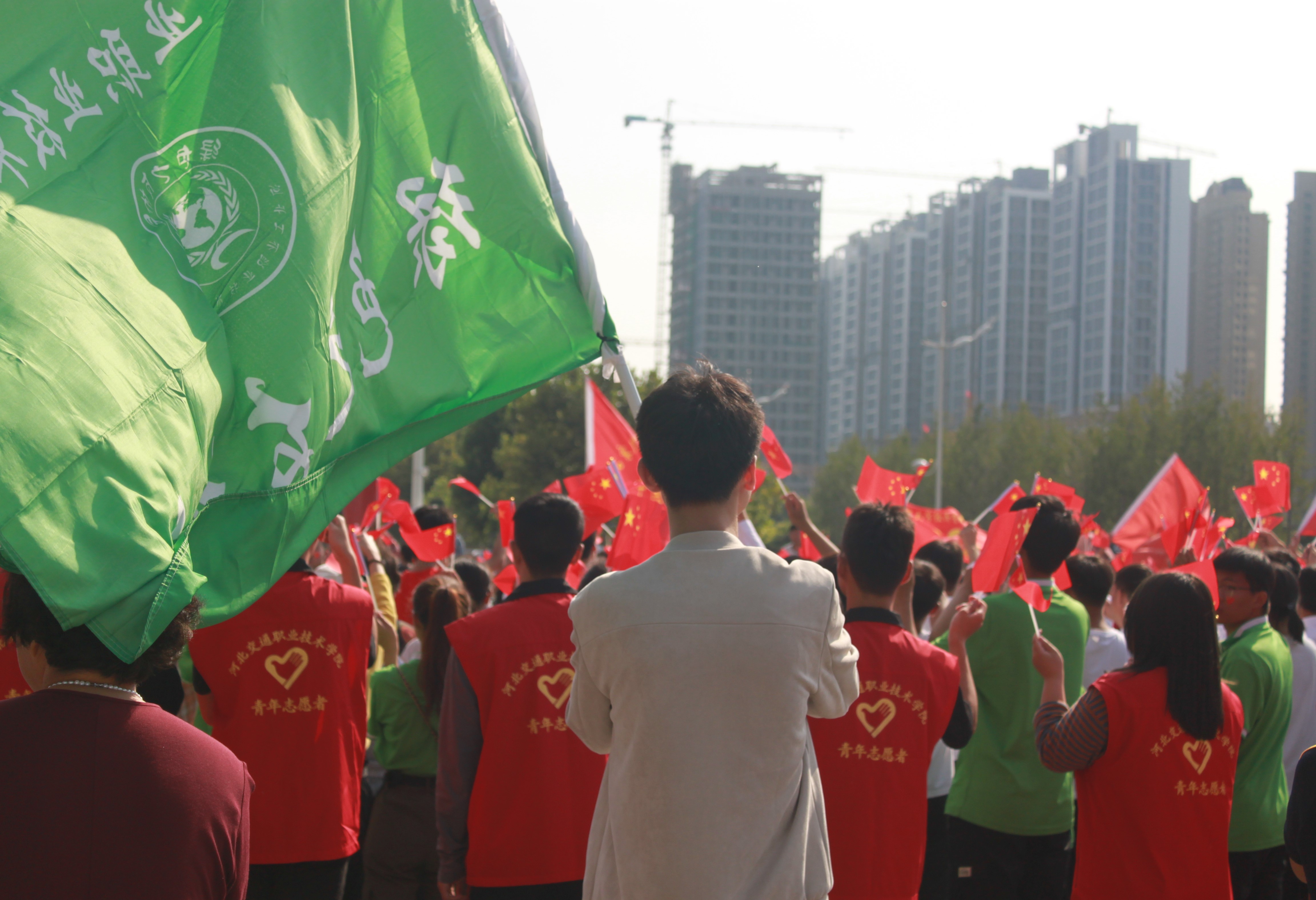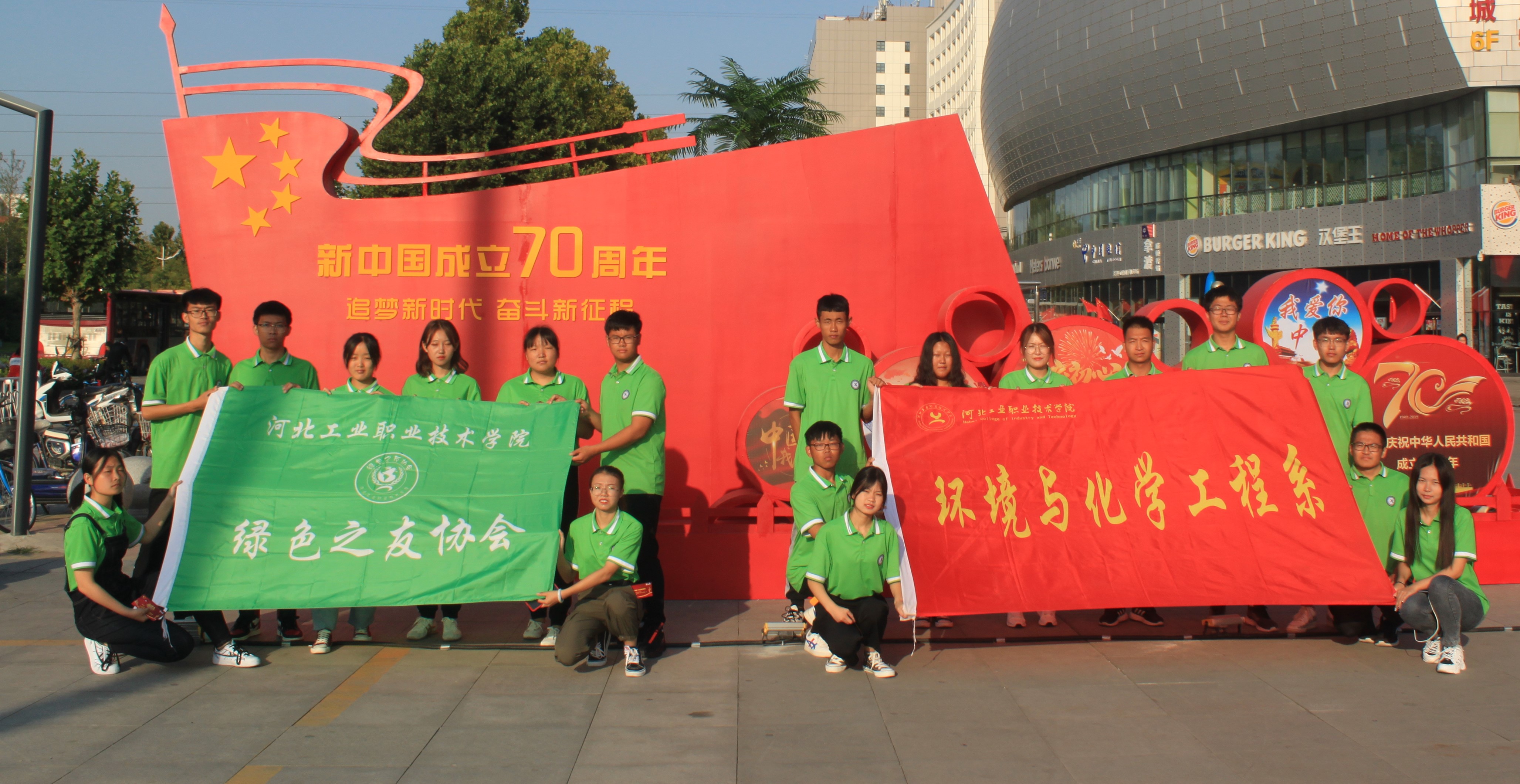 壮丽七十年,奋斗新时代。为庆祝中华人民共和国成立70周年,进一步激发大学生的爱国热情,引导大学生继承和弘扬爱国主义光荣传统,坚定跟党走中国特色社会主义道路的信念。应石家庄大学生爱心公益联盟邀请,我院学子——绿色之友协会于9月21日参加了“我和我的祖国”千人快闪活动,用一首歌献礼新中国成立70周年。